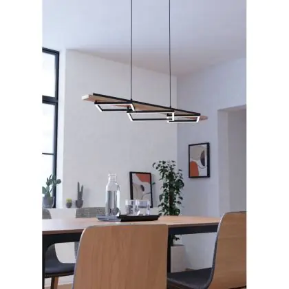 Eglo Pendelleuchte Boyal Holz Schwarz, Braun 42W 3500lm - 830 | Dimmbar