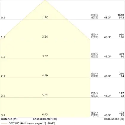 Der Abstrahlwinkel bezeichnet den Winkel, in dem das Licht aus der Lichtquelle ausgestrahlt wird. Er wird in Grad (D) angegeben. Je geringer die Gradzahl des Abstrahlwinkels ist, desto kleiner ist auch der Durchmesser des Lichtkegels, den die Lichtquelle produziert.