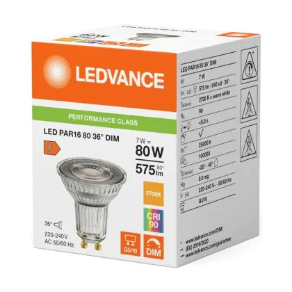 Ledvance LED PAR16 GU10 Reflektor 7W 575lm 36D - 927 | Höchste Farbwiedergabe - Dimmbar - Ersatz Für 80W