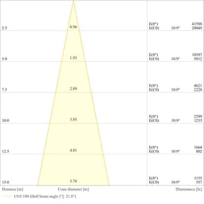 Der Abstrahlwinkel bezeichnet den Winkel, in dem das Licht aus der Lichtquelle ausgestrahlt wird. Er wird in Grad (D) angegeben. Je geringer die Gradzahl des Abstrahlwinkels ist, desto kleiner ist auch der Durchmesser des Lichtkegels, den die Lichtquelle produziert.