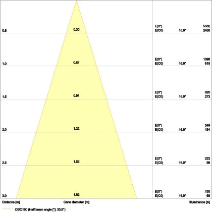Der Abstrahlwinkel bezeichnet den Winkel, in dem das Licht aus der Lichtquelle ausgestrahlt wird. Er wird in Grad (D) angegeben. Je geringer die Gradzahl des Abstrahlwinkels ist, desto kleiner ist auch der Durchmesser des Lichtkegels, den die Lichtquelle produziert.