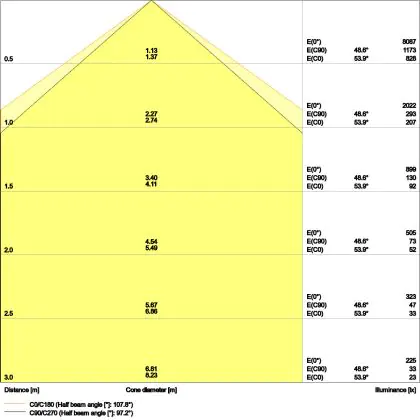 Der Abstrahlwinkel bezeichnet den Winkel, in dem das Licht aus der Lichtquelle ausgestrahlt wird. Er wird in Grad (D) angegeben. Je geringer die Gradzahl des Abstrahlwinkels ist, desto kleiner ist auch der Durchmesser des Lichtkegels, den die Lichtquelle produziert.