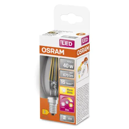 Osram Superstar Classic LED E14 Kerze Fadenlampe Klar 4W 470lm - 822-827 Dim To Warm | Dimmbar - Ersatz Für 40W
