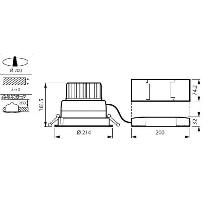 Der Ausschnitt einer Leuchte unterscheidet sich von den Abmessungen der Leuchte selbst und bezeichnet speziell die Grösse der Öffnung in der Decke, die für die sichere Montage der Lichtquelle benötigt wird.