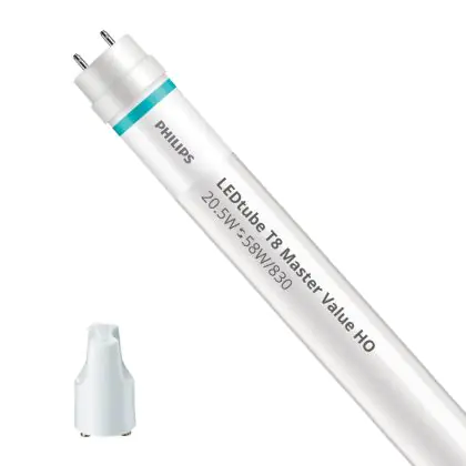 Bei der Philips LED Röhre 150cm | 3000K 20.5W - Master Value HO handelt es sich um eine energieeffiziente LED-Röhre. Sie ersetzt Ihre konventionelle Leuchtstoffröhre mit 58W. Die Röhre ist 1500 mm lang und hat die Farbtemperatur 3000K - Warmweiss. Die durchschnittliche Lebensdauer der LED-Röhre beläuft sich auf 60000 Stunden. Wir bieten Ihnen für dieses Produkt eine Garantie von 5 Jahre an.