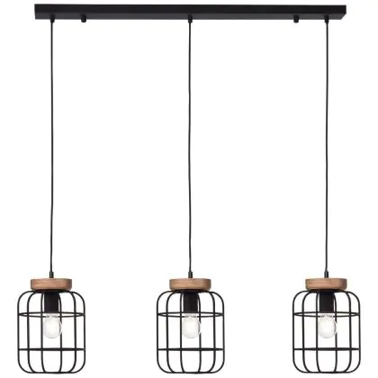 Brilliant Gwen Suspension Luminaire Métal Bois Noir | Convient pour 3x E27