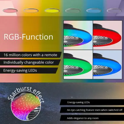 Brilliant Salerno Ventilateur Plastique Métal Noir 36W 4700lm - 830-865 CCT+RGB | 485mm - Télécommande Dimmable