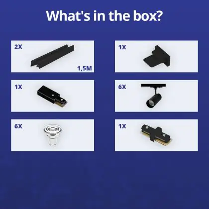 | Nom du fabricant | Complete Straight 3-meter 1-Phase Track Set Black incl. 6x Spot fixture + GU10 2700K 3W Dim – 2x 1.5 | |