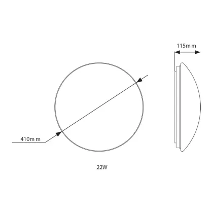 Description Hublot LED Blanc 22W 1839lm - 830 | 410mm - IP44 - Détecteur de mouvement et de lumière - Éclairage de secours 1 heures