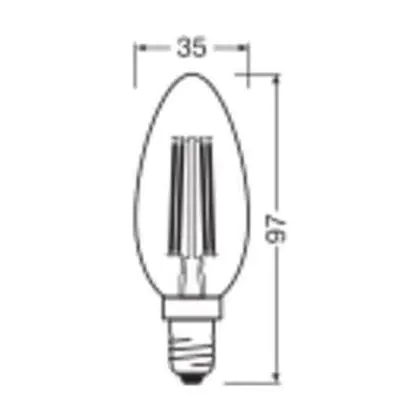 Description Ledvance Classic LED E14 Bougie Filament Claire 3.4W 470lm - 827 Blanc Très Chaud | Dimmable - Remplacement 40W