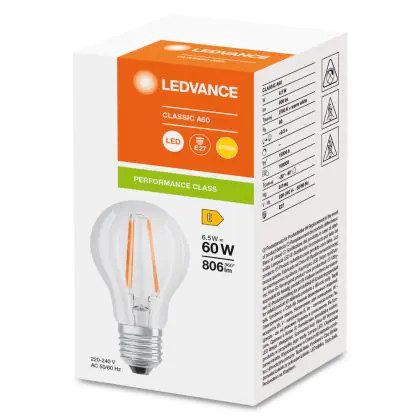 Cette ampoule Ledvance Classic LED E27 Poire Filament Claire 6.5W 806lm - 827- | Remplacement 60W avec son efficacité lumineuse de lumen par watt vous permettra de profiter d’un éclairage de qualité. Avec sa durée de vie de 15000 heures, vous n’aurez pas à vous soucier de son remplacement avant quelques années.