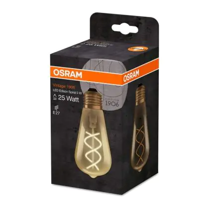 Cette ampoule Osram Vintage 1906 LED E27 Edison Filament Dorée 4W 300lm - 820 | Remplacement 25W avec son efficacité lumineuse de lumen par watt vous permettra de profiter d’un éclairage de qualité. Avec sa durée de vie de 15000 heures, vous n’aurez pas à vous soucier de son remplacement avant quelques années.