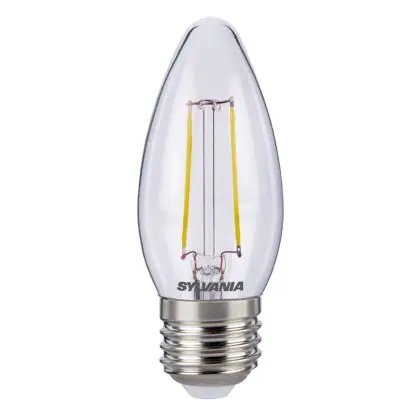 Cette ampoule Sylvania ToLEDo E27 Bougie Filament Claire 4W 420lm - 827 | Remplacement 40W avec son efficacité lumineuse de lumen par watt vous permettra de profiter d’un éclairage de qualité. Avec sa durée de vie de 15000 heures, vous n’aurez pas à vous soucier de son remplacement avant quelques années.